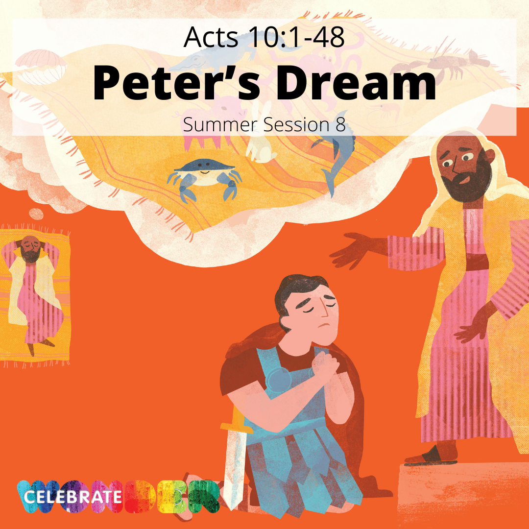 Today’s Bible story is about an important dream. We meet Cornelius, who is a Gentile, not a Jew. He worships God and lives the way God wants him to live. We also meet Peter, who is a Jew and strictly follows the custom of not eating animals that are considered unclean.